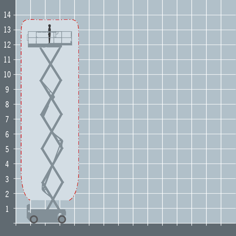 The Dingli DL1412 electric scissor lift is perfect for access in narrow and confined spaces and with non-marking tyres is ideal for indoor use in warehouses and for the interior decoration of large buildings.