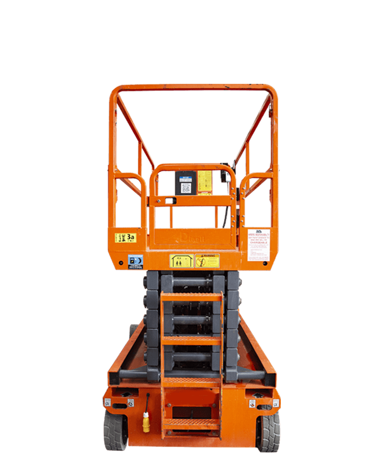 The Dingli DL1612 electric scissor lift is perfect for warehouse high bay use due to its compact width and high platform height.