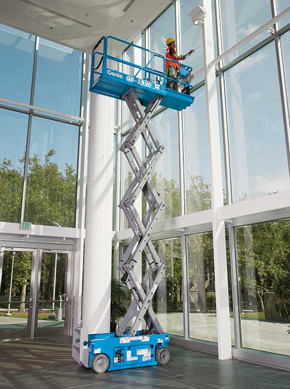 The Genie GS1930 is a low-emission electric scissor that delivers a quiet, convenient method of operation in sound-sensitive environments such as office buildings, shopping malls, hotels, schools and in tight spaces like congested construction sites, elevators and narrow aisles.