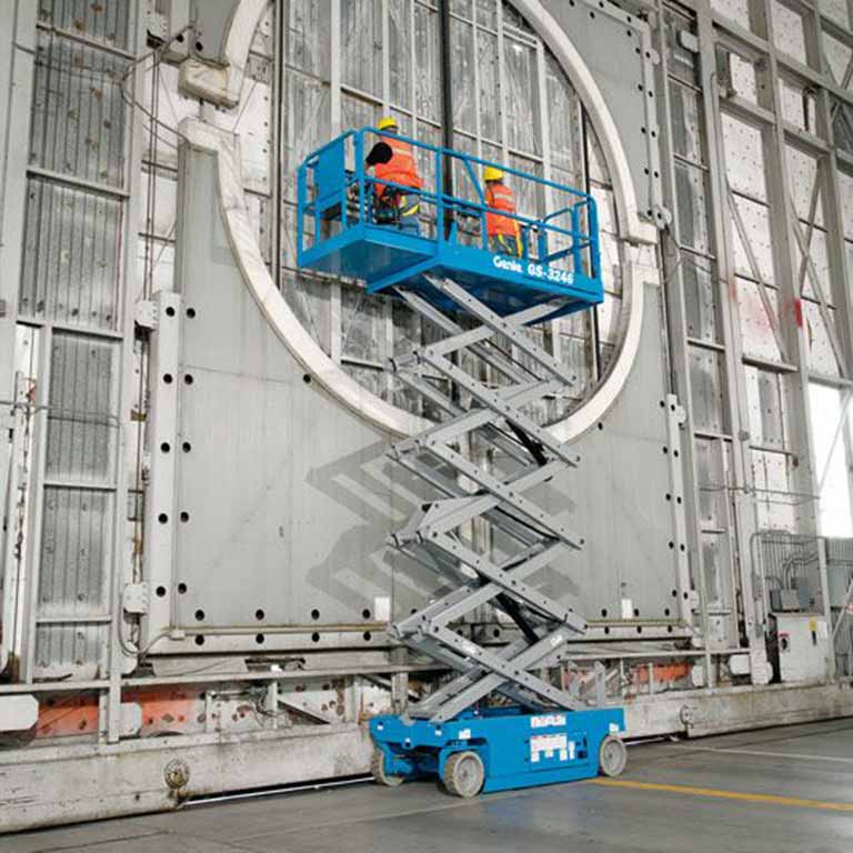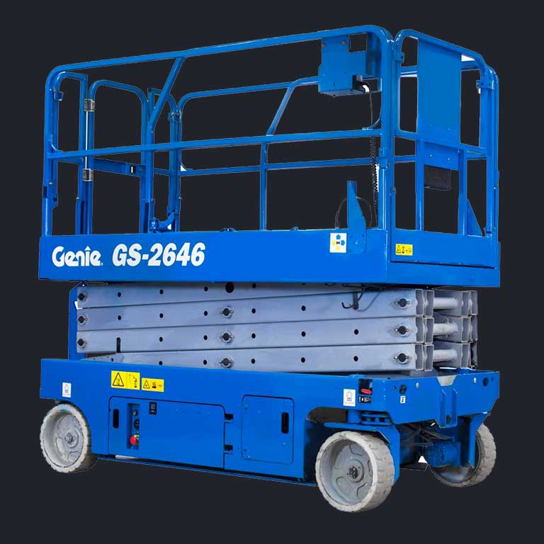 The Genie GS2646 is a low-emission electric scissor that delivers a quiet, convenient method of operation in sound-sensitive environments such as office buildings, shopping malls, hotels, schools and in tight spaces like congested construction sites, elevators and narrow aisles
