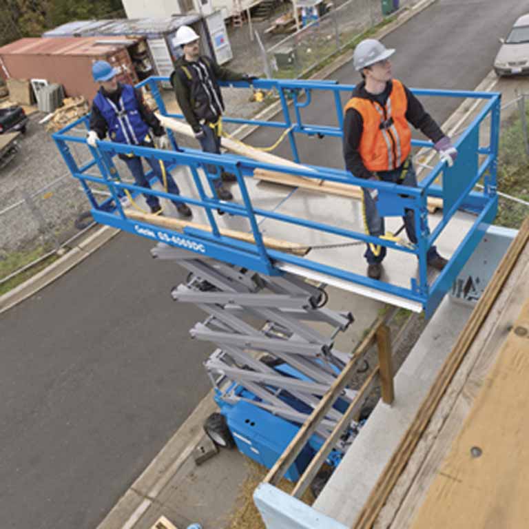 The Genie GS4069 rough terrain scissor lift is an excellent choice for indoor and outdoor construction, maintenance and installation applications where firm, level surfaces are available.
