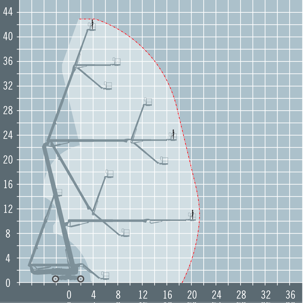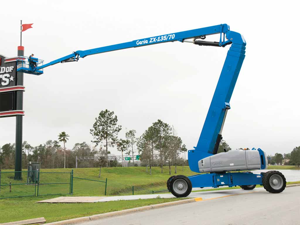 The Genie Z135/70 is the biggest boom in Genie’s articulating range, designed for the largest construction and maintenance tasks. Genie’s X-Chassis expanding axle extends for driving and boom operation but retracts when stowed, giving a transport width of just 2.49 metres so it fits comfortably on a truck.