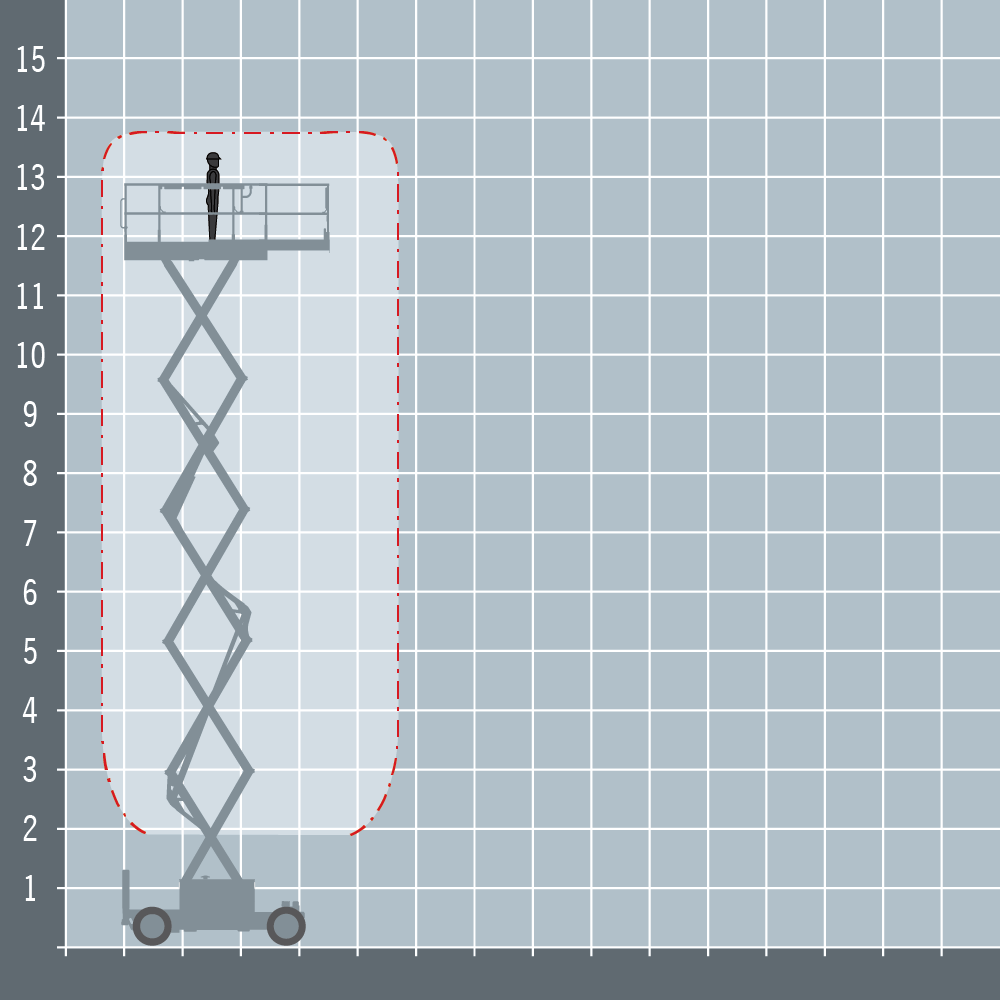 The Haulotte compact 14 electric scissor lift is a robust and reliable scissor for indoor use. With its compact width at just 1.2 meters the Compact 14 is an ideal choice for large high bay warehouses that have width restrictions.