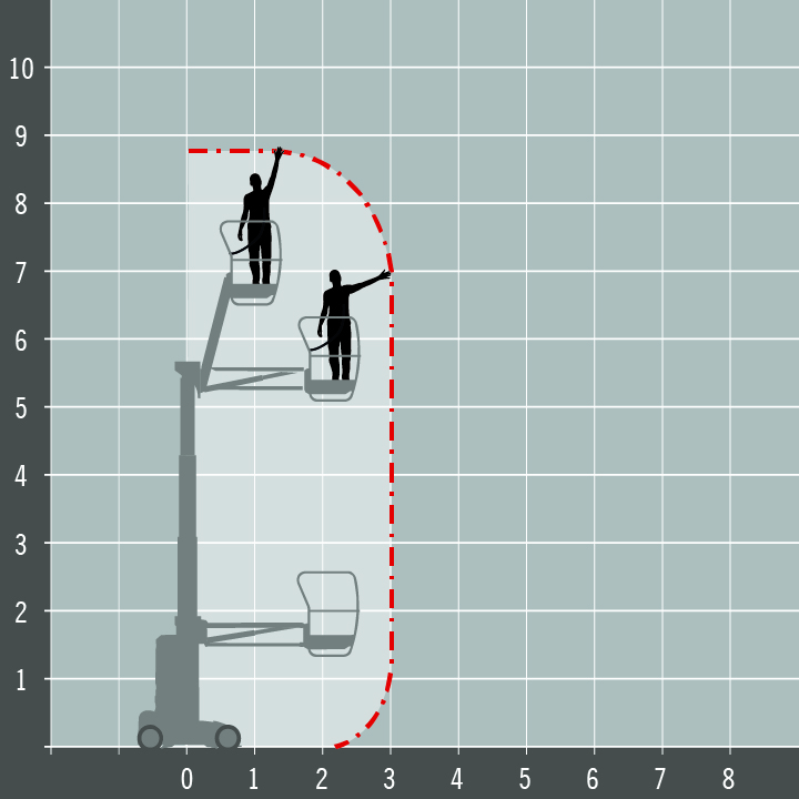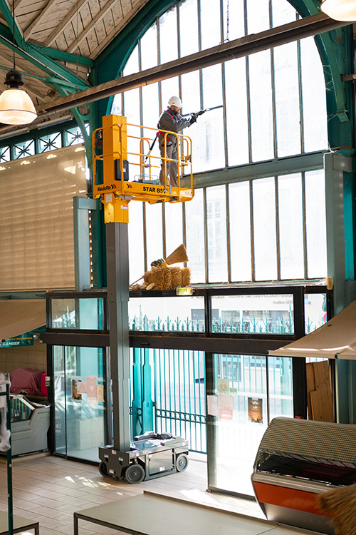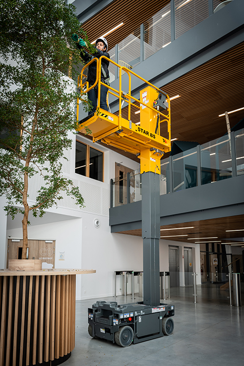 The Haulotte Star 8 is an electric mast boom that is ideal for use when you need outreach in narrow aisles, such as for warehouse maintenance or in supermarkets to reach over the tops of racking/shelving.