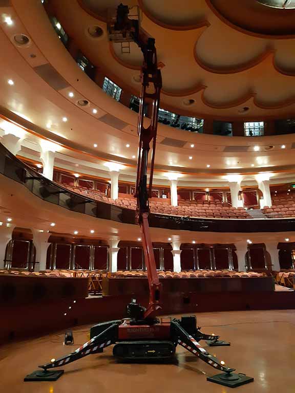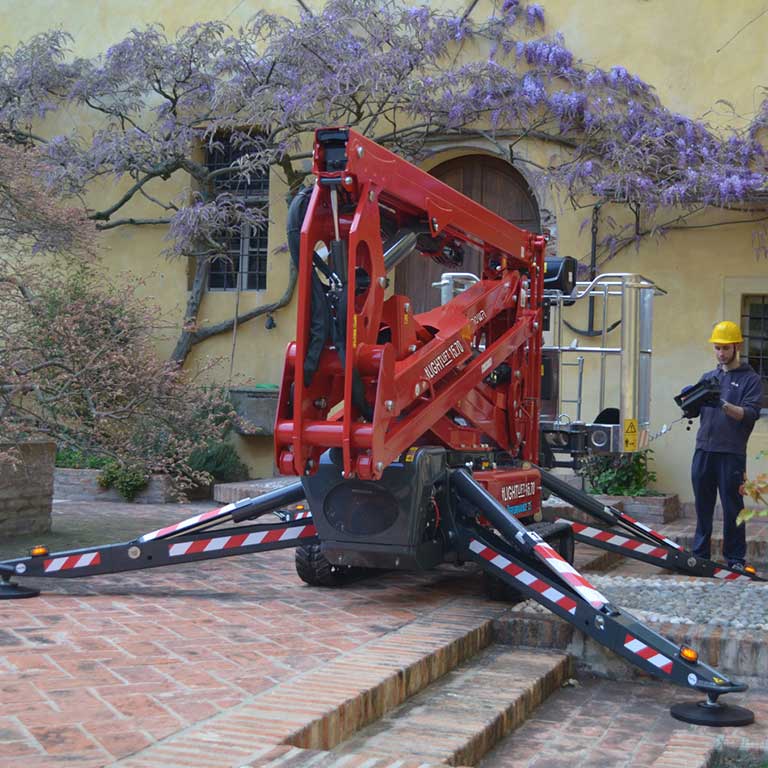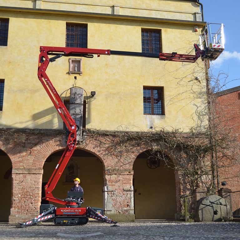 The Hinowa LightLift 15.70 is a compact tracked boom that is particularly suited to working in enclosed spaces such as churches, museums and commercial areas due to its low ground pressure. With a stowed height of less than two metres the machine can easily be manoeuvred through all standard sized civil and industrial doorways.