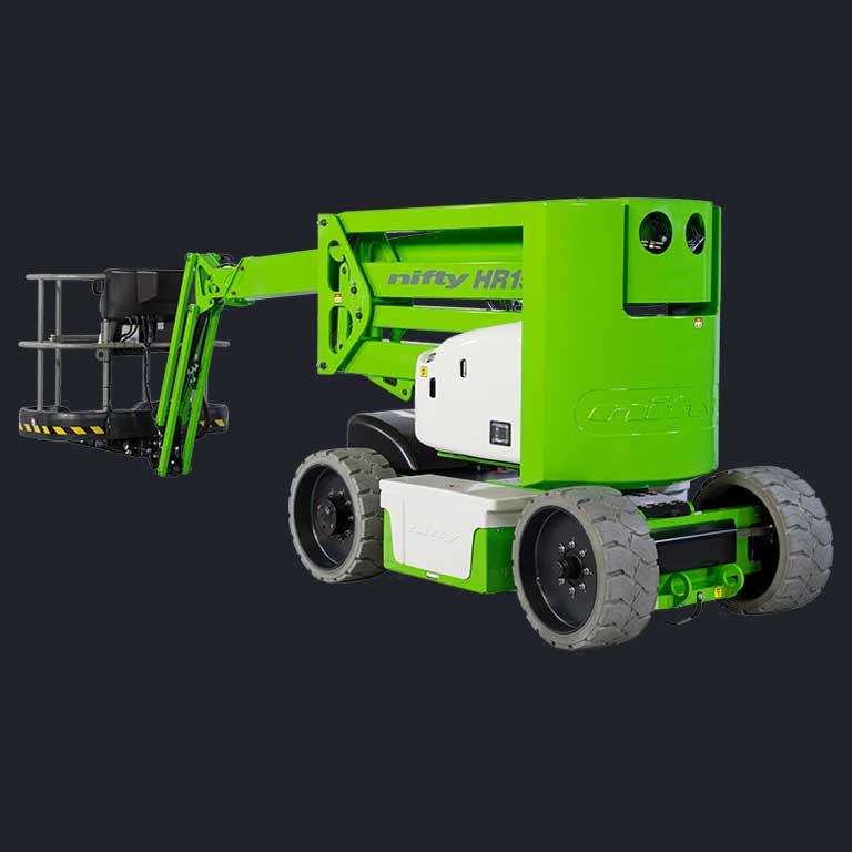 The Niftylift Height Rider 15 (HR15) Hybrid four wheel drive ariculated boom incorporates a smaller power optimised engine that is supported by the machine battery pack for extra power when required. The super-efficient power system allows the batteries to work for longer, so more tasks can be completed and running costs reduced.