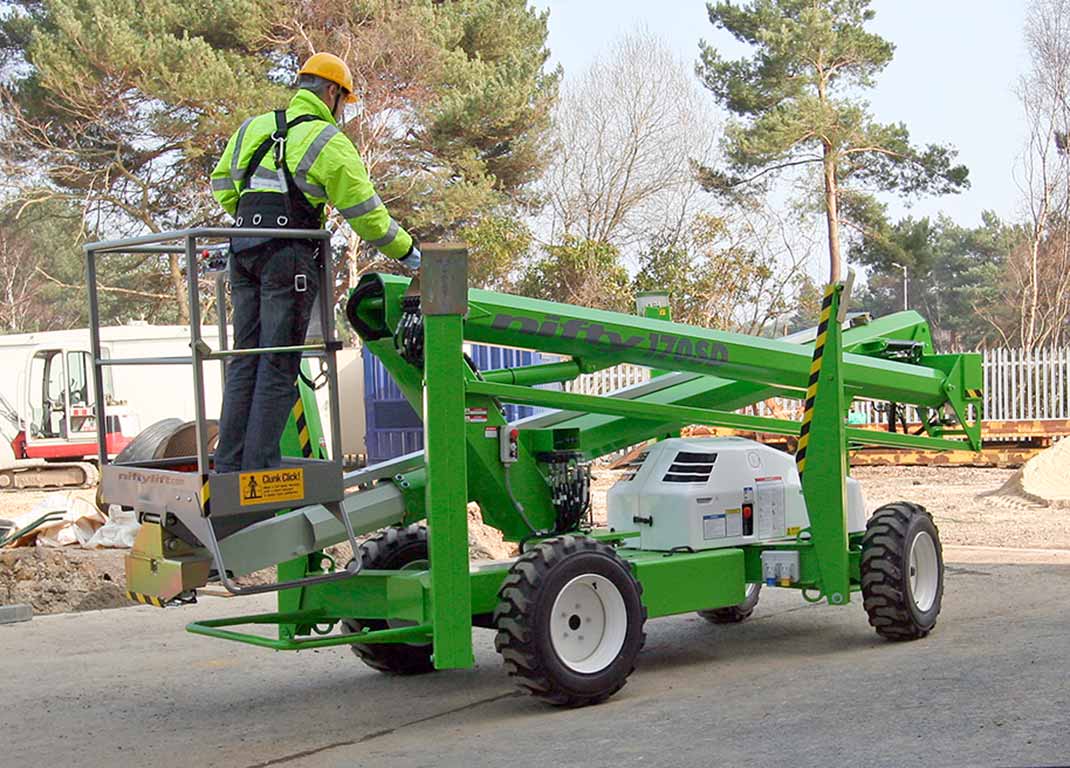 The Niftylift SD170 self drive work platform combines impressive reach capabilities with a robust, lightweight drivable base. Rough terrain tyres and 4WD as standard allow the SD170 to manoeuvre easily over a wide range of site conditions and its outstanding reach makes it ideal for tree care or construction site work.