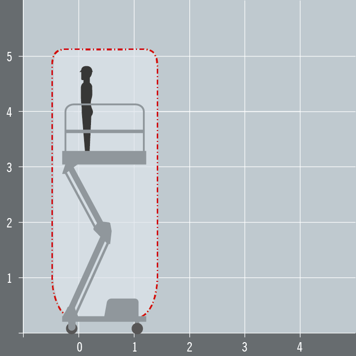 A Push-Around-Vertical with powered lift and fall. Provides a large working platform (1.52 m x 0.75 m) giving  users more room to work and more room for tools and equipment. The Power Tower requires less operations to cover the same area for many applications. And at only 780mm wide will still pass comfortably through a standard single doorway.