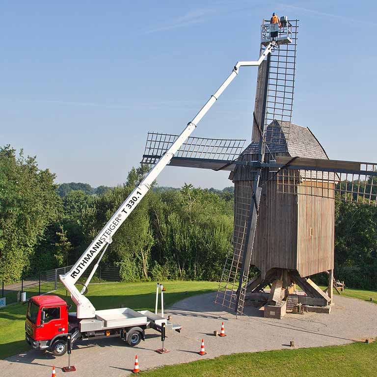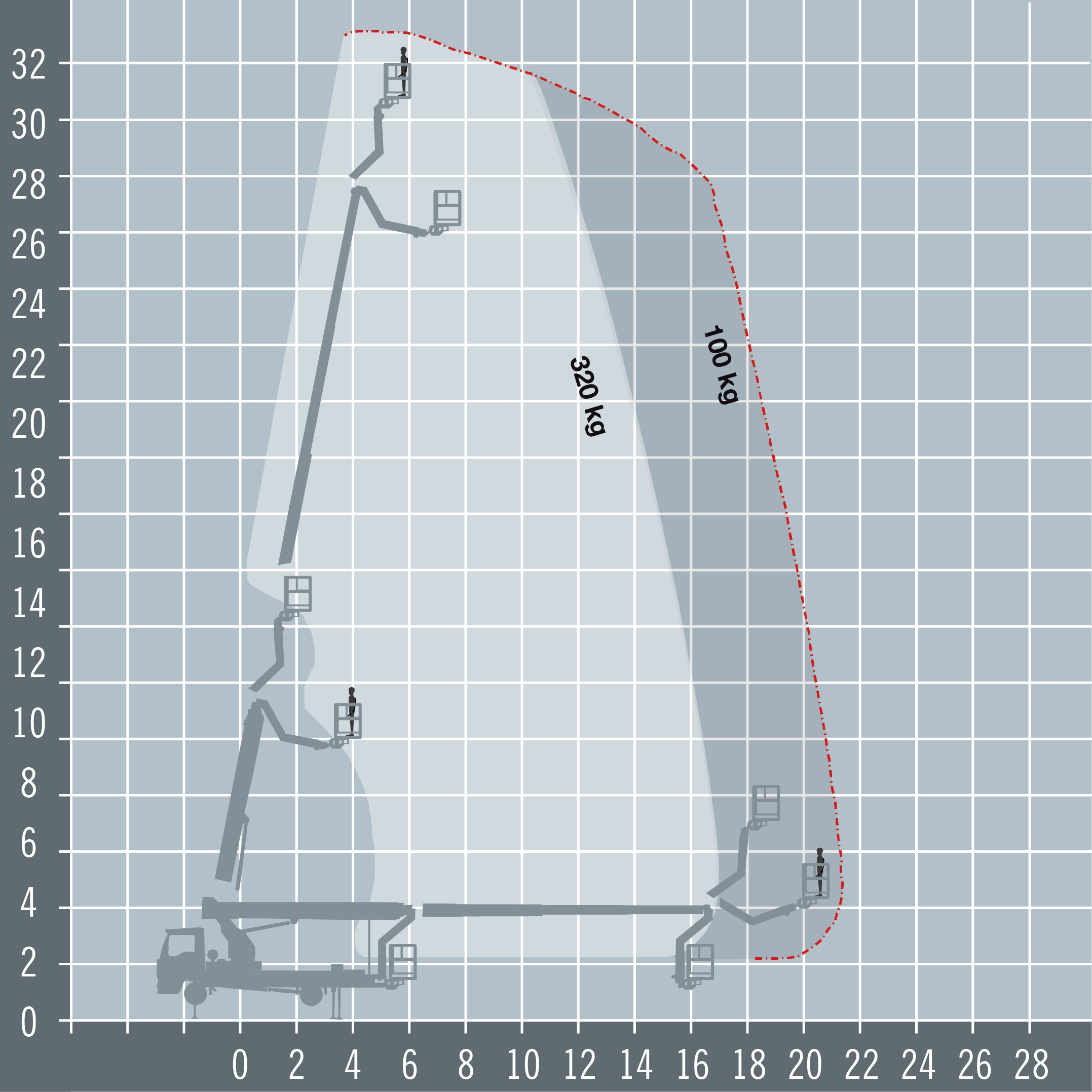 The Ruthmann Steiger T330 truck mount has an exceptional reach height of up to 33 metres and is one of the most innovative truck mounted access platforms available. It offers maximum stability and usability with an impressive horizontal reach of 21.2 metres. The 320kg basket capacity accommodates up to 3 people with tools. It's perfect for multiple site work and can be set up quickly, making it an ideal solution for multiple site jobs.